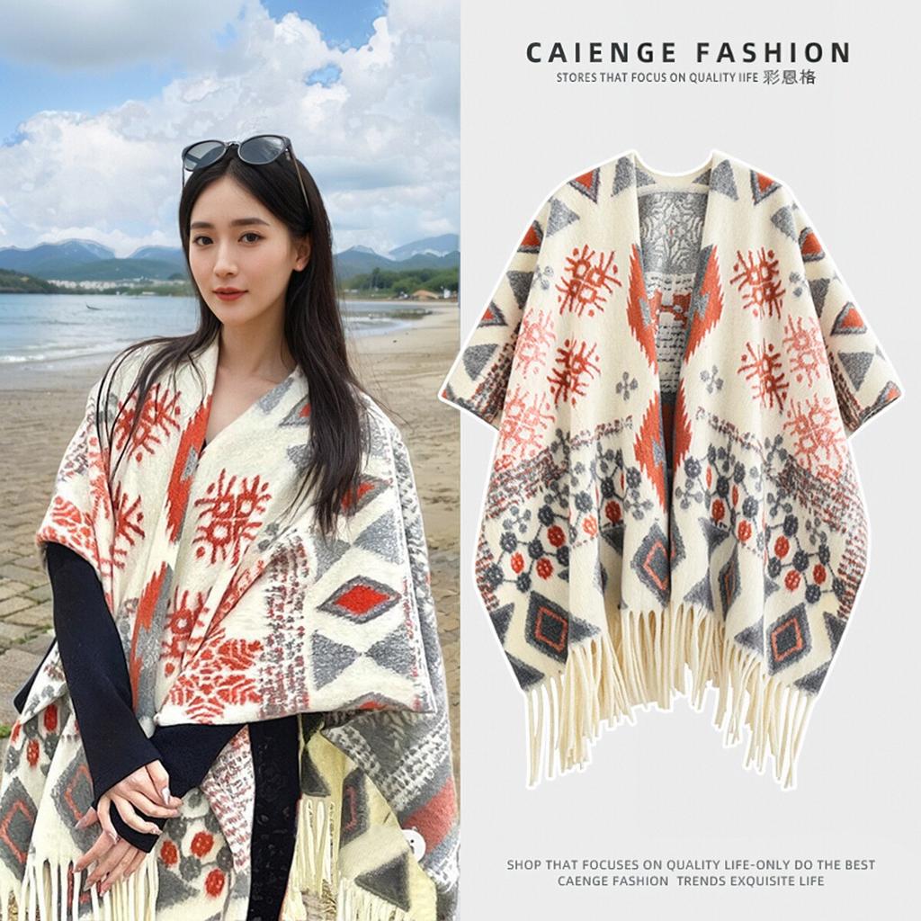 Tassel Cape Jacket Women Shawl Scarf Travel Outside Scarf