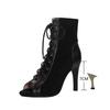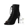 Sandálias de salto alto de malha oca Sapatos femininos de verão Preto Lace-Up Sexy Peep Toe Botas Stilettos Jazz Dance Sapatos femininos