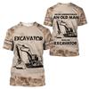 Impressão 3D masculina de verão, trabalhador de escavadeira personalizado, camiseta confortável, tendência da moda, manga curta solta, roupas grandes