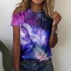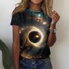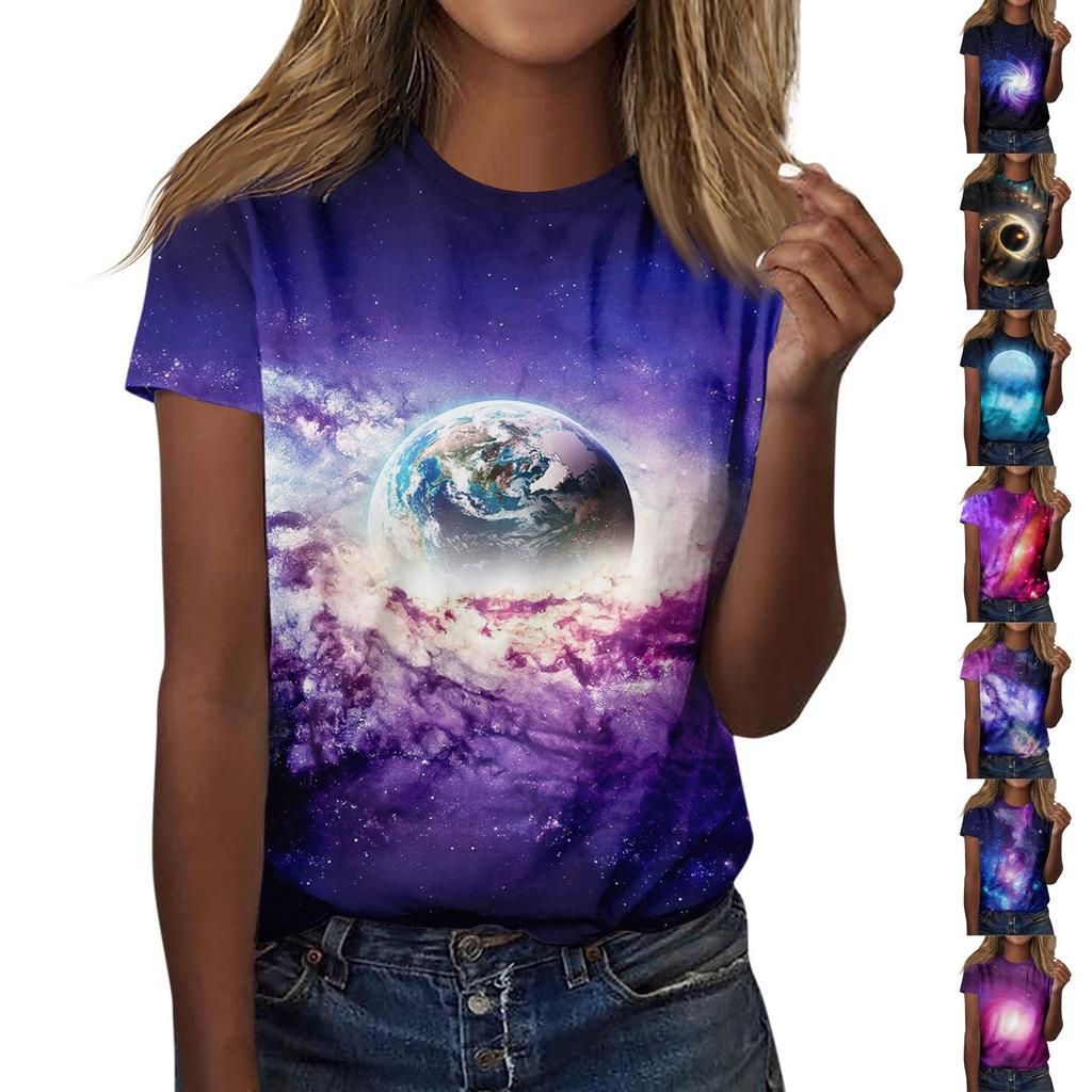 Camiseta feminina casual solta estampada gola redonda pulôver manga curta top