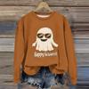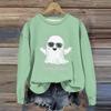 Moda feminina manga comprida estampa de Halloween gola redonda suéter top