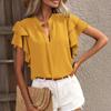 Camisa feminina cor sólida com decote em V casual mangas duplas cor sólida