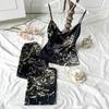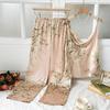 Sexy Pajama Two-Piece Set Camisole Tops Pants Loungewear Women Pijamas Suit Soft Print Flower Suspenders Sleepwear Outside