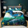 Conjunto de capa de edredom oceano king size twin size conjunto de cama com tema marinho microfibra coral peixe caranguejo padrão animal subaquático capa de edredom