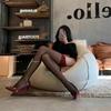 Elegantly crafted black silk suspender lace stockings with polka dot bow and over-the-knee design.