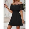 Vestido de verão feminino solúvel em água com renda e patchwork de uma linha e ombro de fora