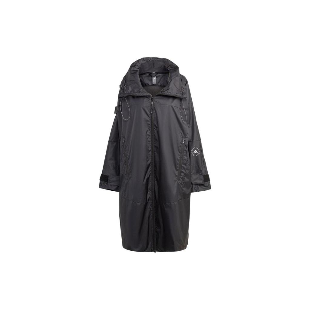 Adidas X Stella McCartney Collaboration Solid Color Hooded Mid-Length Long Sleeve Windbreaker Women Outerwear Black HS0038