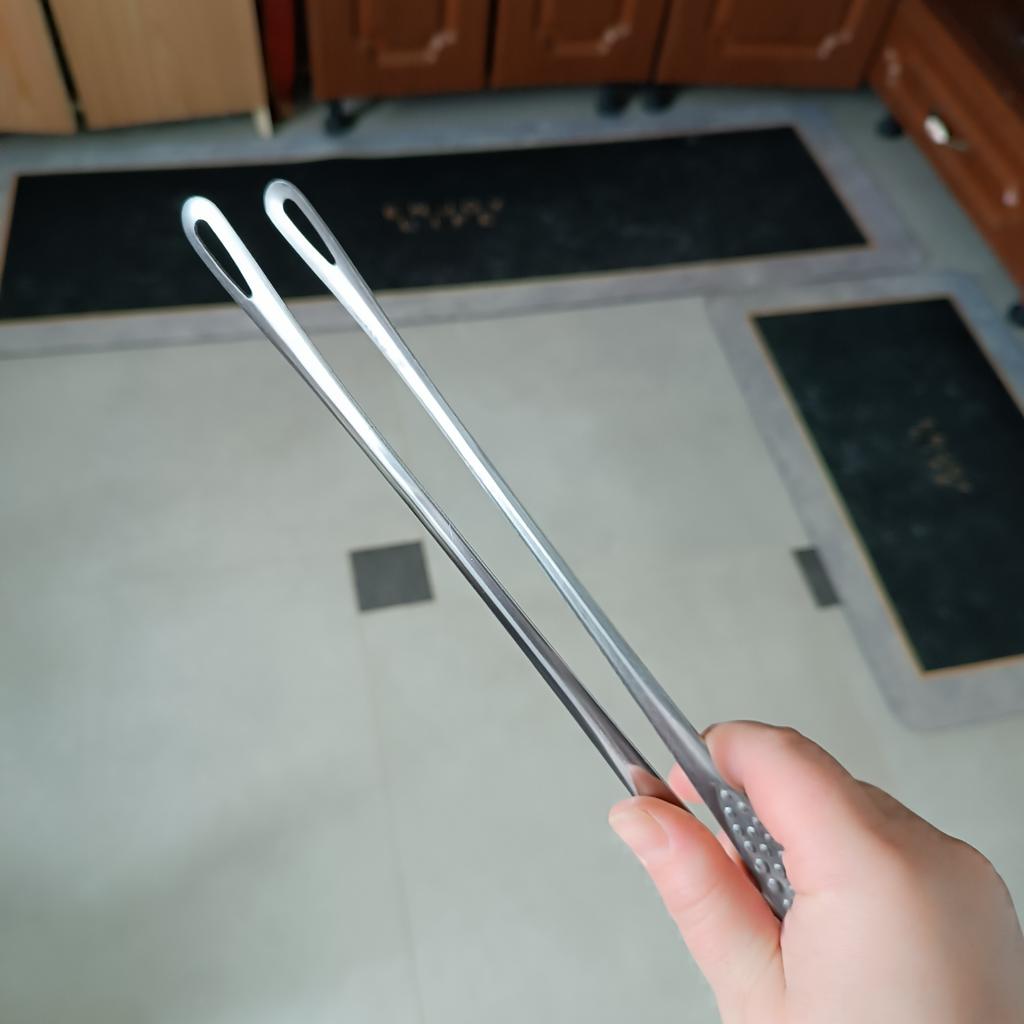 Com os pegadores de comida, em princípio, estou satisfeita. O metal é um pouco fraco. Dobra-se.