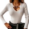 O decote é desenhado com corrente de metal para criar um decote, o que é único e chique. Pode ser combinado com jeans, saias, calções, calças de couro, etc.. Malhas finas mostram as curvas sensuais do seu corpo, deixando você atraente.