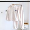 New Autumn/Winter Couple Sleepwear Set with Fleece and Thickened Zipper Long Sleeve Pants for Soft and Comfortable Home Fur