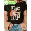 Let's Rock Guitarra Elétrica Amante de Música Banda Guitarrista Retro Camiseta Feminina Unissex Verão Soft Tops Impressão Design Original Presentes Camisetas