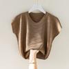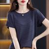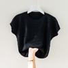 Top de Verão Seda Gelo Camiseta Feminina Manga Curta Solta Grande Manga Morcego Camisa Tricotada