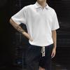 Tops listrados masculinos de cor sólida com decote em V, camisa esportiva masculina de manga curta