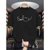 Camiseta Estampada Sorriso para Mulheres Unissex Casual Gola Careca Manga Curta Moda Verão Camisetas Top