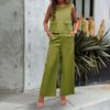 Terno feminino casual de verão com cor sólida e calça de perna larga
