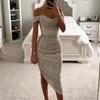 Vestido longo assimétrico sexy com glitter brilhante e dobra, elegante, liso, para banquete de inverno, feminino, 2024, um ombro, justo, vestido de festa
