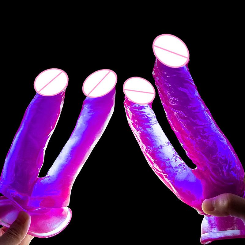 Dildo Feminino em Forma de U Cabeça Dupla Pênis Falso Pequeno Masturbador Feminino Cristal Colorido Produtos Eróticos