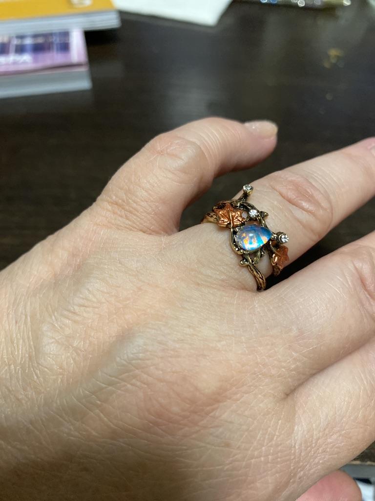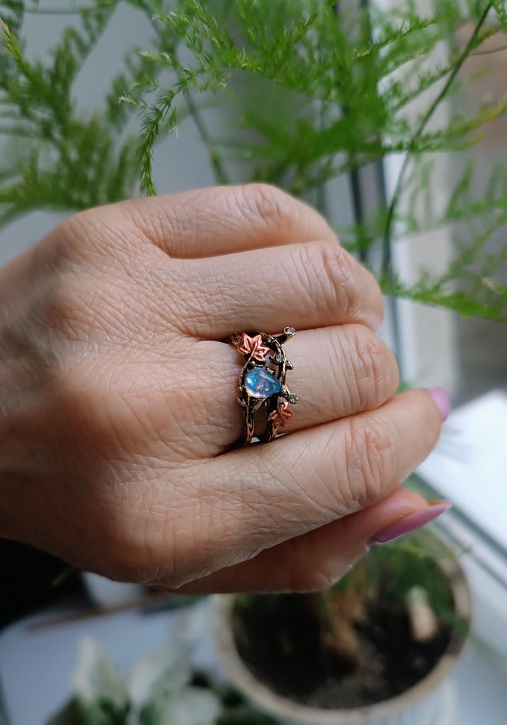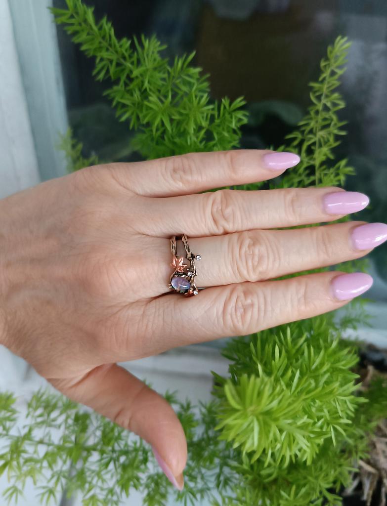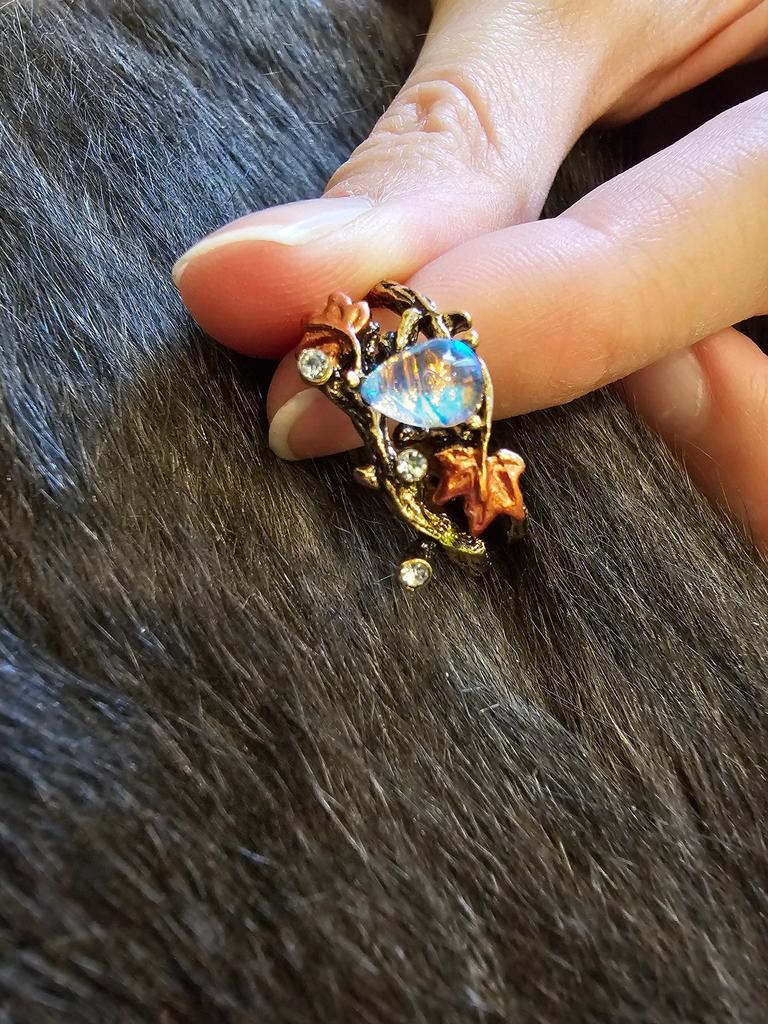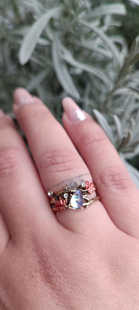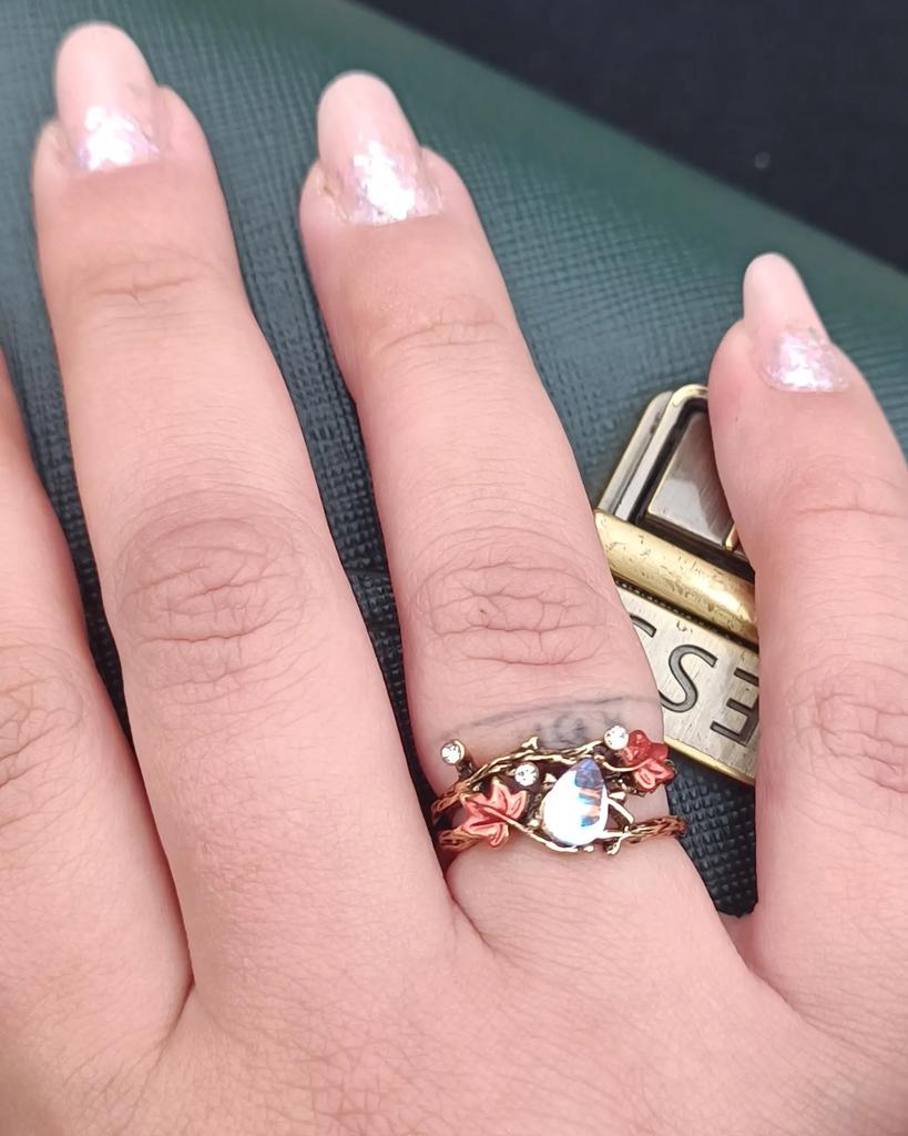 Anel vintage antigo de ouro com galho de folha de bordo e pedra da lua para mulheres e meninas, joias leves e luxuosas, acessórios para presentes de aniversário