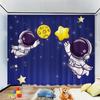Cartoon Astronaut Space Travel Curtain, Astronaut Villain Cartoon Planet A Set Of Two, Home Bedroom Living Room Curtain.