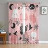 Cortinas de janela de tule roxo preto com mansão mal-assombrada de Halloween, sala de estar, organza, cortina de voile transparente, quarto, cozinha, decoração de casa