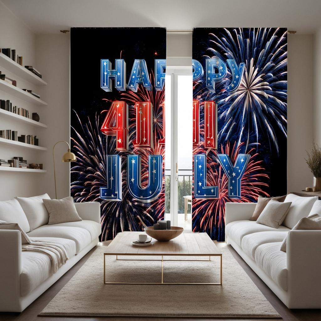 2 peças Dia da Independência Olá Julho cortina decorativa de fogos de artifício Cortina estampada digitalmente gravata preta estilo decoração de casa dec