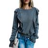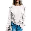 Fashion Women Solid Color Ruffled Long Sleeve O Neck Pullover T-shirt Blouse Top