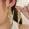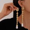 Brincos Longos com Borla de Ouro Galvanizado em Forma de Espiga de Trigo com Pérolas Shijia e Tarraxas de Prata de Lei S925 para Mulheres