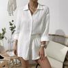 Women's Summer Pajama Set Translucent Long Sleeve Ladies Sleepwear 2 Pcs with Shorts Single Breasted Thin Loose Pyjama Female