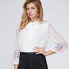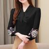 Fashion Long Sleeve Chiffon White Shirts Women Solid Embroidery Flowers Elegant Women's Blouses Vintage Lace-up Bow Collar Office Lady Tops 6056