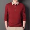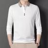 Camisa polo masculina primavera e outono quatro estações seção fina de cor sólida gola tesoura manga comprida lapela casual camiseta