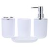 1 x Copo para escova de dentes, 1 x Copo para enxaguatório bucal, 1 x Saboneteira, 1 x Frasco de loção