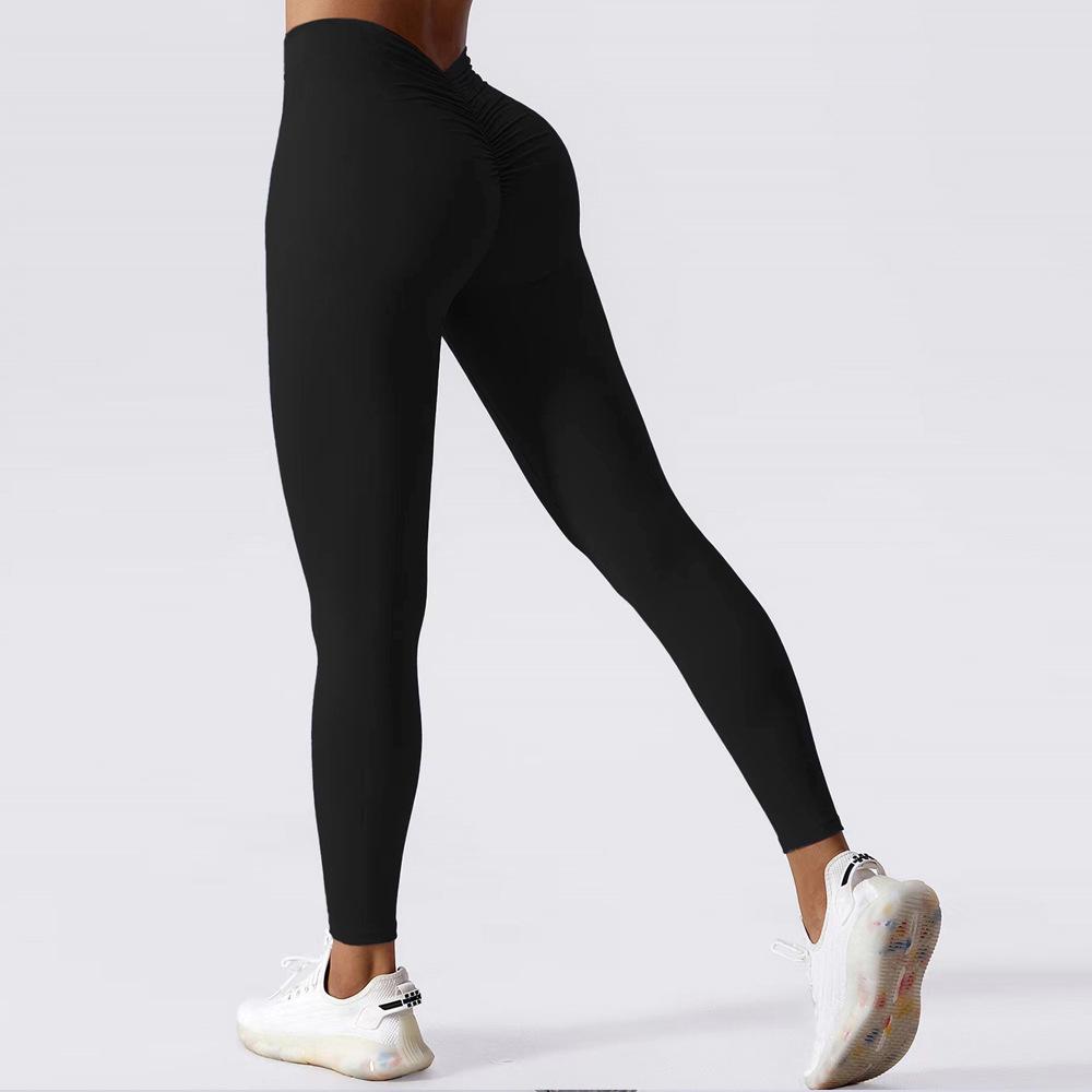 V-Shaped High-Elastic Hip-Lifting Pleated Yoga Pants - Popular in Europe & America for Training, Running & Fitness