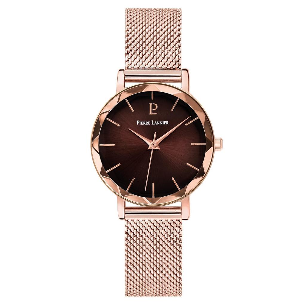 Pierre Lannier Relógio Coleção Múltipla Vidro Lapidado Pulseira de Metal Importado [Pierre Lannier] Feminino [Produto Regular] (Castanho)