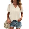 Tops de verão femininos casuais com babados, manga curta, gola redonda, camisetas soltas e plissadas