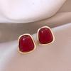 Brincos Geométricos Retrô Vermelhos de Clip para Mulheres – Estilo Exquisito de Outono/Inverno