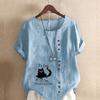 Moda feminina gato preto estampado manga curta camiseta solta algodão camisa casual solto verão blusa tops plus size