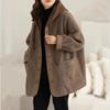 Parkas femininas moda outono inverno soltas médias longas casuais emendadas jaqueta feminina quente de malha sobretudo feminino
