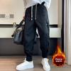 Calça Jogger Masculina Tendência, Corte Solto, Estilo Japonês, com Punho, Aveludada, para Outono/Inverno.