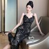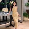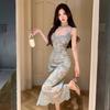 Women's national style temperament lace crochet high waist slit dress