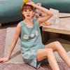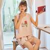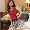 Pijamas Femininos Algodão Regata Estudante Roupa de Dormir Roupa de Descanso Sem Mangas Cor Sólida Alças Curtos Conjunto de 2 Peças Desenho Animado Roupa de Dormir