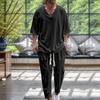 Spring Trend Men's Fashion V-neck Shirt Casual Comfortable Loose High-end Long Sleeve Pants Solid Color Beach Suit