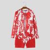 INCERUN Macacão curto masculino com estampa de manga comprida e frente aberta com cadarço, peça única, macacão