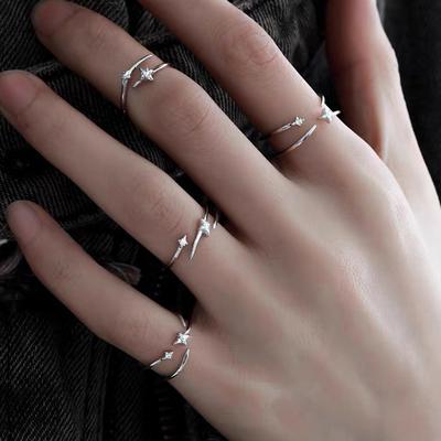 Flower Diamond Four-Leaf Clover Open Ring Female Tide Chain Rose Index Finger Ring Niche Personality