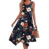 Moda casual feminina gola redonda sem mangas estampa irregular bainha midi vestido bainha midi vestido