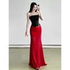Women's clothing design sense printing splicing mesh thin tube top skirt tide