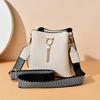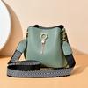 Quality wide strap feminine leather bucket bag fashion designer ladies shoulder crossbody bags
