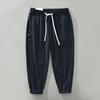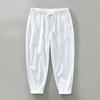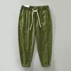 Men's Summer Breathable Loose Straight Linen Pants Solid Color Elastic Waist Casual Nine-minute Pants
