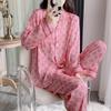 Pajamas Women Monogrammed Printed Girl Home Wear Two-Piece Cardigan Long-Sleeved Simple Wearable Ladies Loungewear