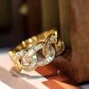 Huitan Newest Wedding Rings for Women Luxury Gold Color Crystal Cubic Zircon Proposal Engagement Rings Girlfriend Trendy Jewelry