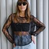 Women's Spring and Summer Sexy See-through Loose Lace Long-sleeved Hollow Inner T-shirt
